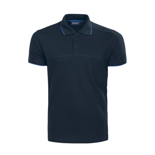 Piqué shirt with a modern cut and contrast at collar, cuffs and button opening. Decorative seams over chest and down side panels. 100% cotton, 190 g/m2. Colors: navy. Sizes: S-XXL.