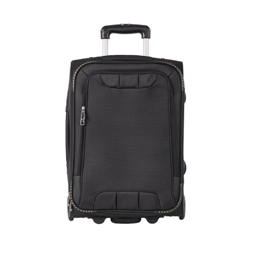 Main compartment with tie down and mesh pocket. Large outer pocket in the front with room for laptop. Organizer for pens, business cards, etc. Suitable as carry-on luggage on for example Ryan Air. Telescopic aluminum handle. 600D polyester. Volume: approx. 38 litres. Colors: black/green. Sizes: 39x20x54 cm. Laptop: max. 17,3".