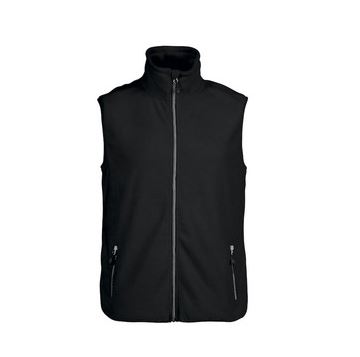 Two-side vest in thick fabric brushed on both sides. Front pockets, contrasting YKK zippers, and decorative flatlock. Elastic tape at hem. 100% polyester, 280 g/m2. Colors: bright orange, red, blue, navy, lime, black, metal grey. Sizes: S-5XL.
