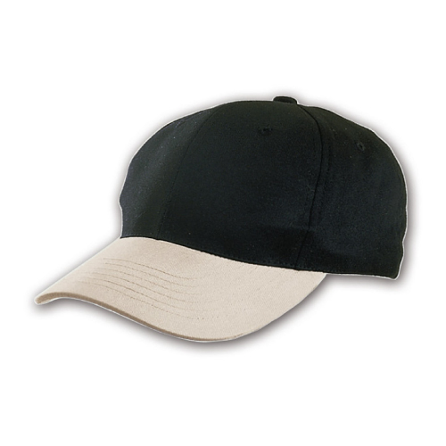 Cap in cotton twill, pre-curved peak. Adjustable Velcro strap at back. Colors: black/sand, sand/navy, navy, blue, red, sand. Sizes: one size.