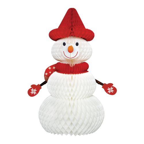 Decorative snowman made of honeycomb paper.