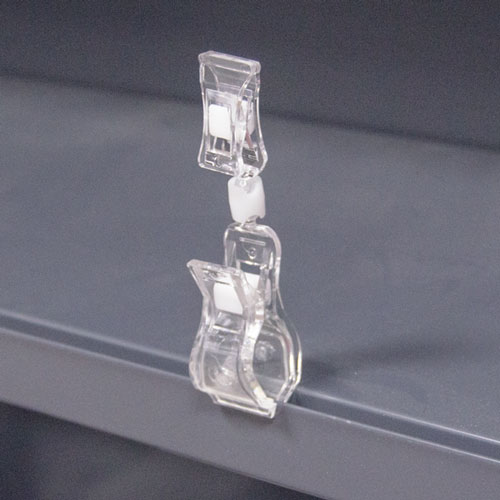 Clear plastic grip system consisting by a large clamp, 65 mm length, a small clamp, 45 mm length, joined by a connector.