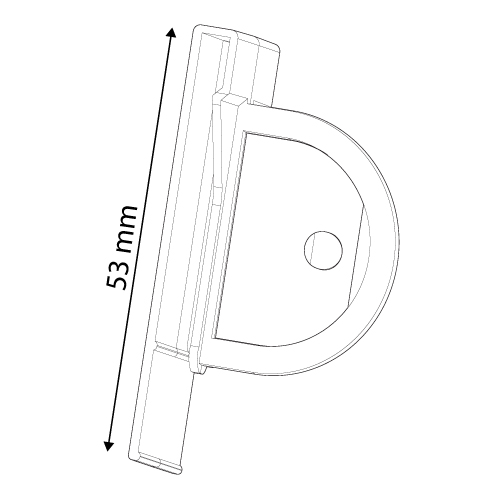 CLIP STOPPER FOR PERFORATED PRINTS, FIXING ON 53 MM SHELF PROFILE, HOLE 10 MM FROM THE EDGE PRINT