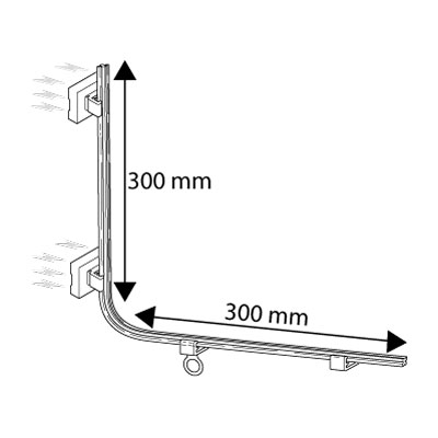 Aluminum flag hanger with horizontal arm and fixing on shelf pillar using two magnets. Size: 300x300 mm. The flag is suspended on horizontal arm by two transparent sliding hooks included. Color: aluminum.