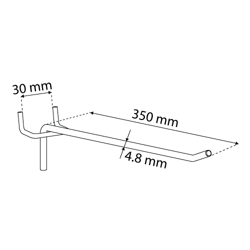 Simple hook, galvanized, various lengths, wire diameter of 4,8 mm, and the opening between clamping arms of 30 mm. This type of hook is recommended for products with medium volume and weight.