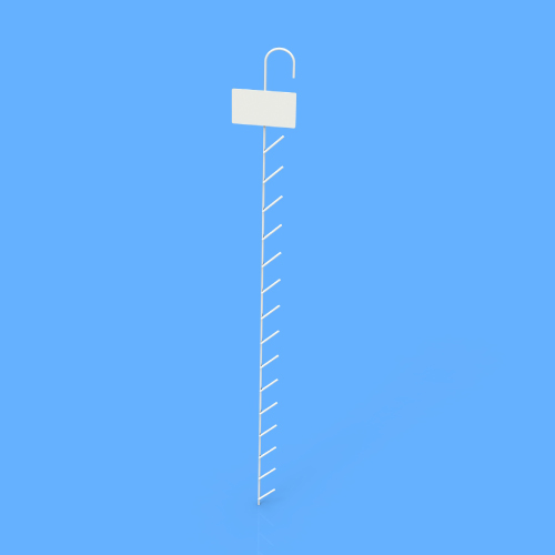 Exposure strip in white painted steel, 930 mm length, 4 mm diameter, with header for the sticker and 15 suspension points with 3 mm diameter, arranged on one side.
