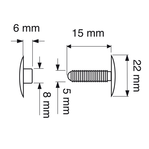 Plastic rivet with snap fastening action, for materials with varying thickness. Outer head Ø 22 mm, Ø thread of 6 mm, hole material Ø of 8 mm.