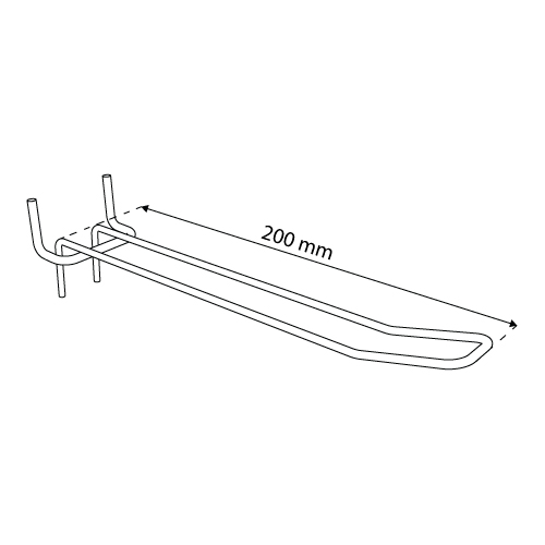 "U" hook, galvanized, 4.8 mm diameter, various lengths, with distance between clamping arms of 45 mm, and fixing on perforated panels.