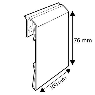Pocket for print with elastic hinge and clamping on label holder, parallel display to the shelf. Length: 100 mm, minimum order 500 m.