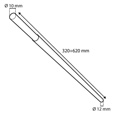 ADJUSTABLE CHROMIUM TUBE, 320-620 MM LENGTH, 10+12 MM D