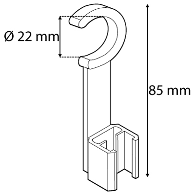 Tube clip, swivel type, to suspend frames from round rails, tubes etc., with max. Ø 22 mm, length of tube clip of 85 mm. Colors: transparent.