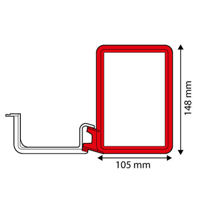 Stopper with 65 mm short magnetic arm that holds up to 5,6 kg force and a plastic frame. Due to the gravitational system, the frame comes back into position, perpendicular to the shelf, after being moved. Frame colors: white, red and grey.