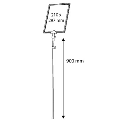 SHOWCARD STAND BD-DEKO A4P, FIXED TUBE 900 MM, BLACK HINGE, TRIANGULAR T-PIECE