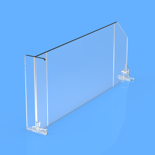 Dividers made of clear plastic, 120 mm height, with two attachment points, with front "T" 120x35 mm and variable lengths. Divider size: 120x585 mm.