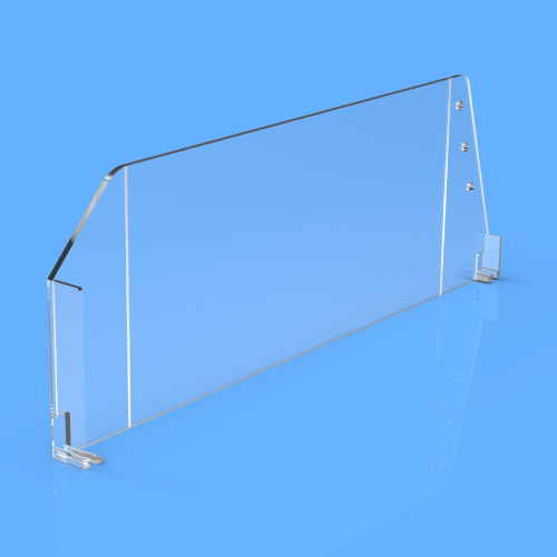 Prima S 3/120 divider, made of clear plastic, have two attachment points, front "L" 17x80 mm on the right side and front "T" 20x24 mm in the back. They have a height of 120 mm and the length varies from 335 mm up to 585 mm. To prevent drop off of products on the shelf, these dividers are provided with three holes at a height of 50, 75, 100 mm, located at the back, allowing the use of SAP 320-01 rod, D 5 mm, with a length between 995 mm and 1245 mm. Divider size: 120x485 mm.