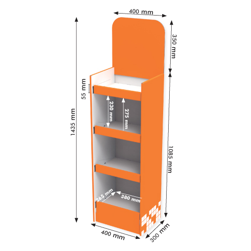80 KG, DISPLAY 400x300x1085+350 MM HEADER - CORRUGATED CARDBOARD