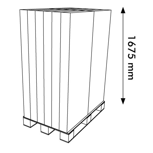 One pallet: 12 pcs, 76 kg, 800x1200x1675 mm [the pallet height may vary, depending on the specific truck requirements]