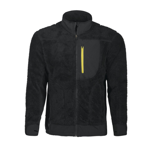 Very warm, light functional fleece jacket. Softshell reinforced in exposed areas. Two side pockets and a breast pocket with ID card holder. Perfect as layer 2 sweater or as outerwear. One-hand drawcord bottom. Cuffs with thumb holes. Colors: black. Sizes: XS-XXXL.
