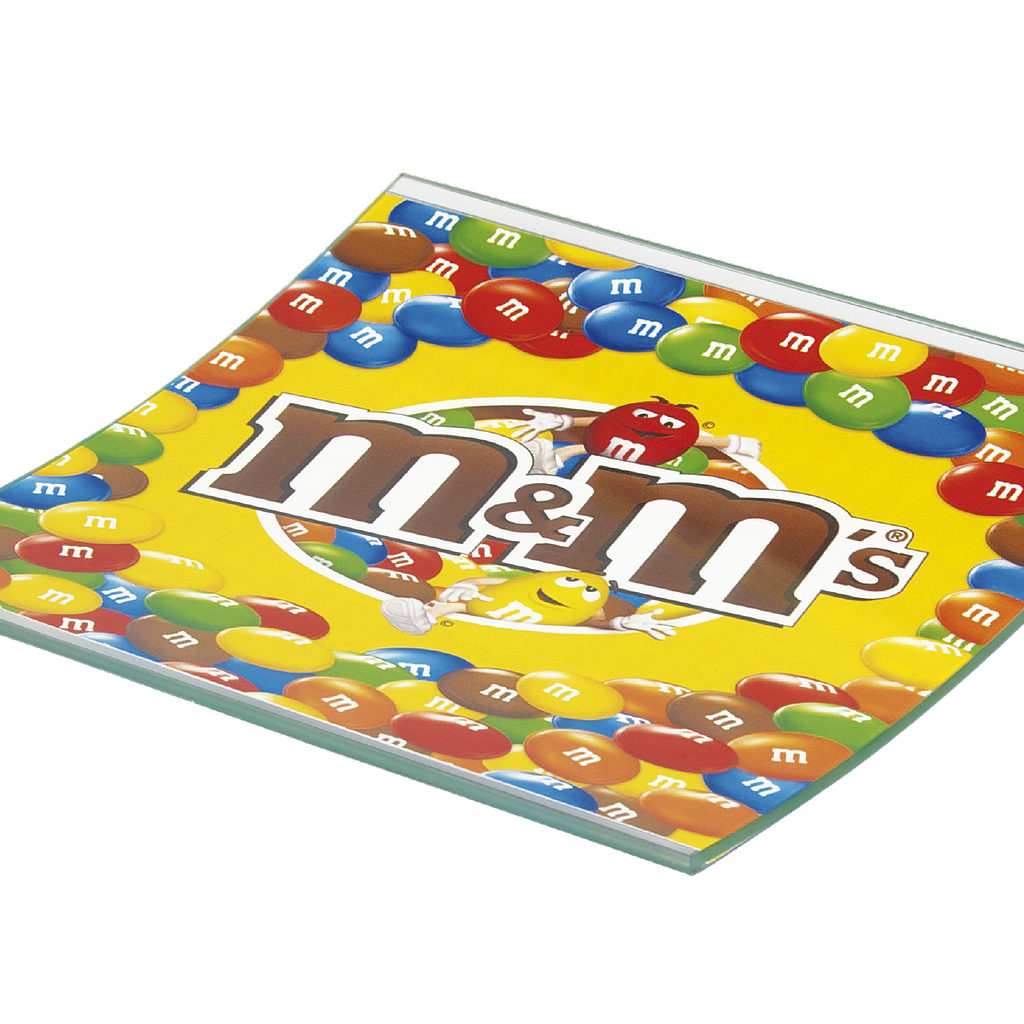 SQUARE GLASS CASH TRAY WITH 1 MM PET SURFACE, 180X180X20 MM, 180X170 MM PRINT SIZE