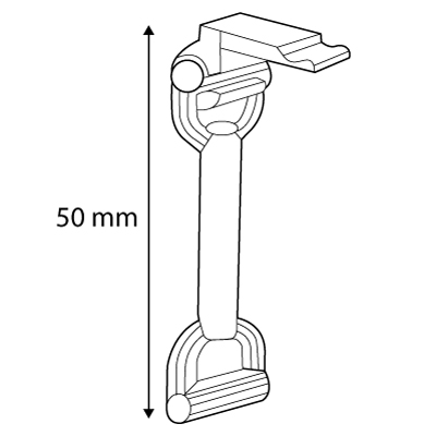 CLICK rod 50 mm length, with hinged CLICK adaptor. It is fixed on soles CLICK (FAP 004-01) for the assembling of price holders. Colors: white, transparent, black.