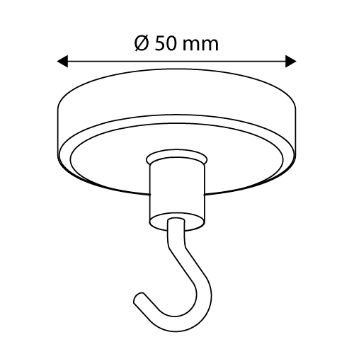 ROUND MAGNET WITH HOOK, D 50 MM, MAGNETIC FORCE UP TO 17 KG
