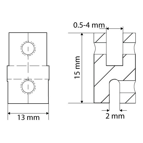 ALUMINIUM ACCESSORY, 13X15 MM (DXH), WITH SIMPLE HORIZONTAL MOUNTING, FOR 0,5-4 MM MATERIAL THICKNESS