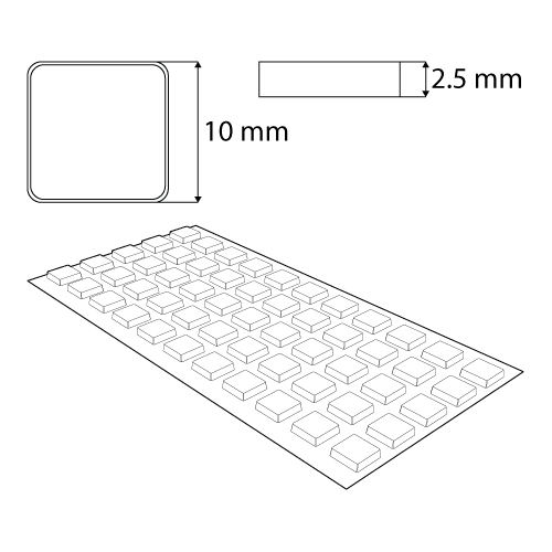TRANSPARENT ADHESIVE DROPS 10X10X2,5 MM, CUBIC SHAPE, 55 PADS / SHEET