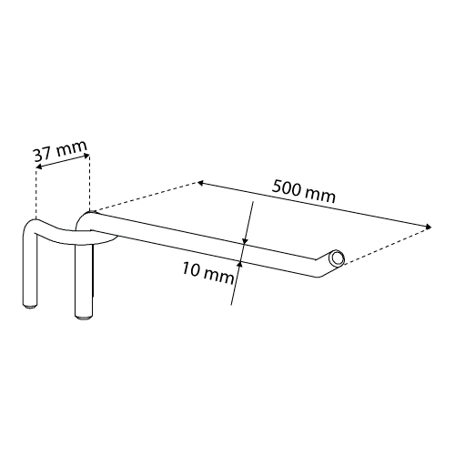 CHROMED HOOK, 10 MM DIAMETER, 500 MM LENGTH, 37 MM OPENING OF CLAMPING ARMS