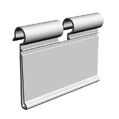 Label holder for wire T hook with a maximum diameter of 6 mm. Available lengths from 45 to 145 mm. Transparent pocket reflected on front.