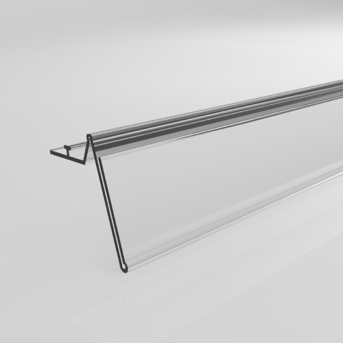 Snap-on profile with adhesive fastening, 15x998 mm and label holder of 26 mm. Color: transparent.