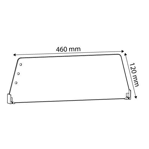 Prima S 4/120 dividers, made of clear plastic, have two attachment points, front "T" 20x24 mm at both ends, height of 120 mm, the length varies from 335 mm up to 585 mm. To prevent a possible drop off from the shelf of products, in the upper front side, at 50 mm, 75 mm and 100 mm heigth, the divider has holes through which the rod SAP 320-01 can be inserted, D 5 mm, with a length between 995 mm and 1245 mm. Divider size: 120x460 mm.