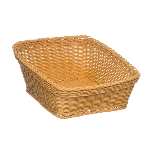 Poliratan rectangular basket, made of plastic, base size: 400x500 mm (WXL), and the height is increasing from 140 mm to the front up to 250 mm in the back. Thus, the exposure of this type of basket is extended, the buyer can easily view all the products. Colors: beige.