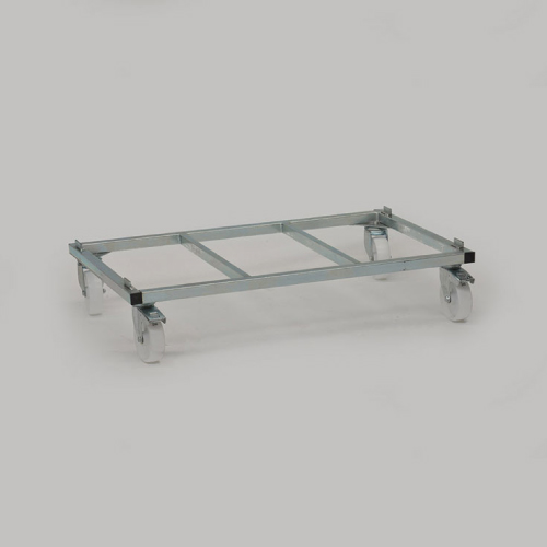 Rectangular metal base, galvanized, 1280x500 mm (LxW), with wheels in each of the four angles. They are very useful in moving UPP 258-4641 and UPP 267-4641 metal baskets.